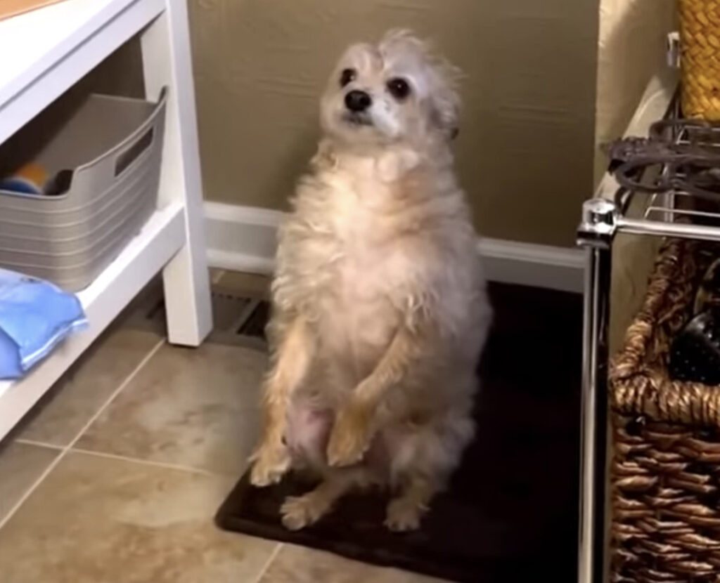 部屋のすみっこでひとり静かに、 ぼーっと立っている犬さん。 怒られて立たされているわけでもないし、 なにか遊びをしているわけでもありません。 ただただ前足を上げて立ち上がり、 いったい何をしているのかと思ったら... 隣にある棚をチラチラ。 そこ... -