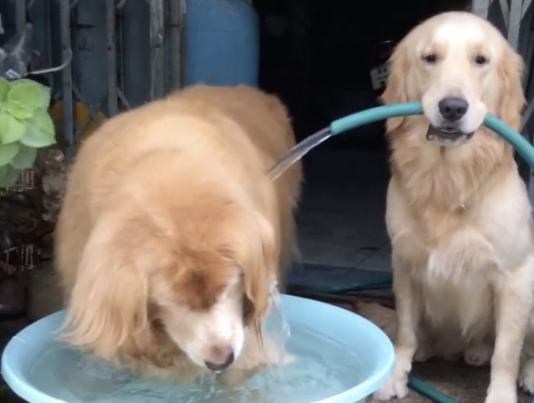 水遊びが大好きな2匹の ゴールデンレトリバーさん。 この日は1匹が放水担当、 もう1匹が先に水浴びということで プールを作ってあげることに。 カメラ目線でポーズをとりながら 「こんな感じ?角度どう?」と ホースを構える犬さん。 自分も水浴びしたそう... -
