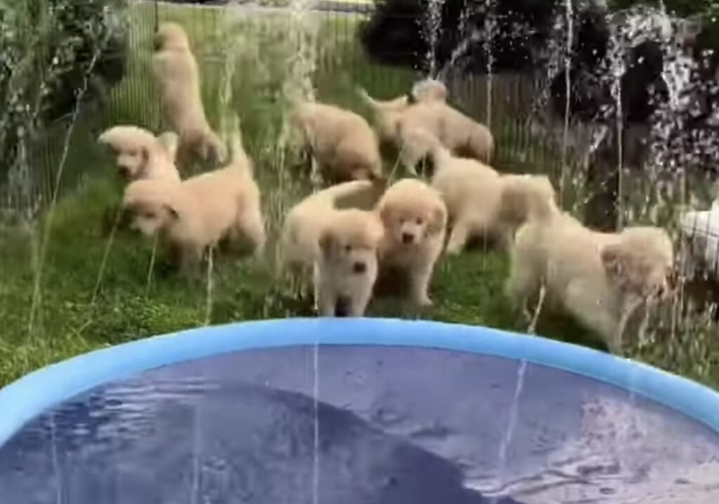 ゴールデンレトリバー子犬のために プールを用意した飼い主さん。 ゴールデンレトリバーといえば 「お水遊び大好き!」な性格の子が多く、 きっと喜んでくれるはず♪ しかもこのプールは、 周りから水が飛び出すスプリンクラー付き! これはすごく楽しそう... -