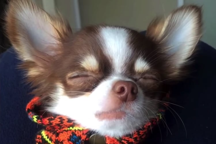 お散歩嫌いなチワワ、寝たふりでやり過ごそうとする。