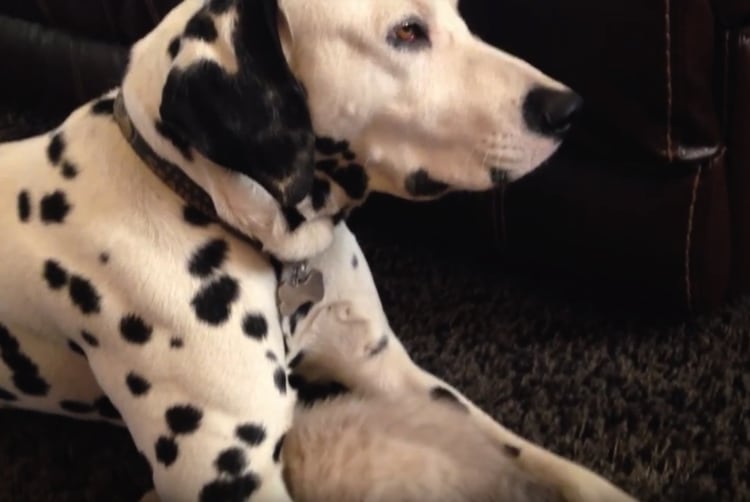 愛情にほっこり!犬の腕の中にいたモコモコは…