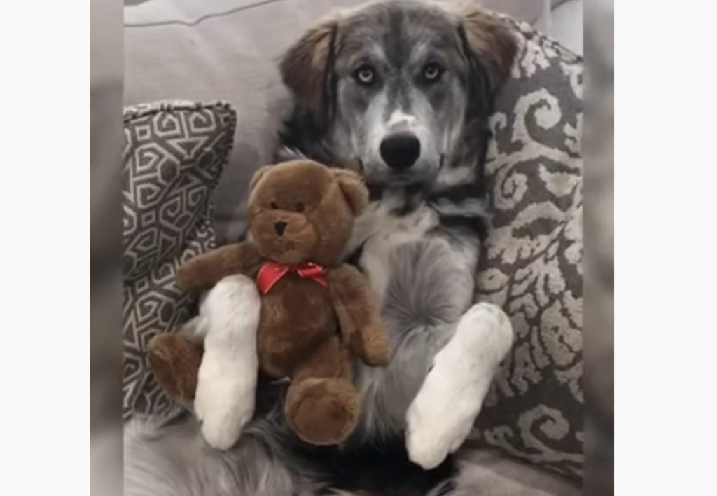 クマのぬいぐるみを抱えてソファにくつろいでいるワンコさん。 このクマはずっとお気に入りで大事にしているそうです。 そんなワンコさんに、飼い主さんが 親友はだぁれ?と質問すると、 「この子だよ〜渡さないから!」というように クマのぬいぐるみをぎ... -