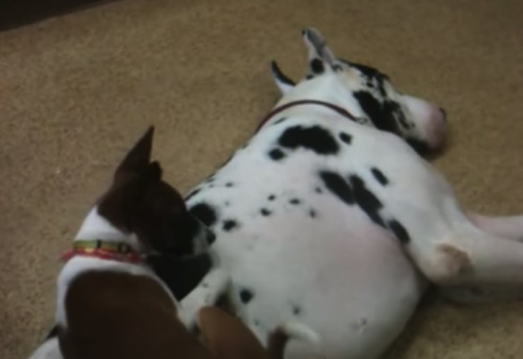どうしてそこに乗りたいのか謎すぎる。寝ている同居犬の背中で眠りたい犬。