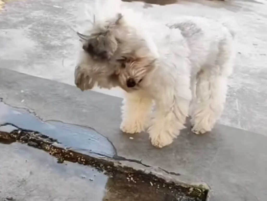 お水の中に誰かいるの? 自分の影が気になっている犬さんが可愛すぎ!