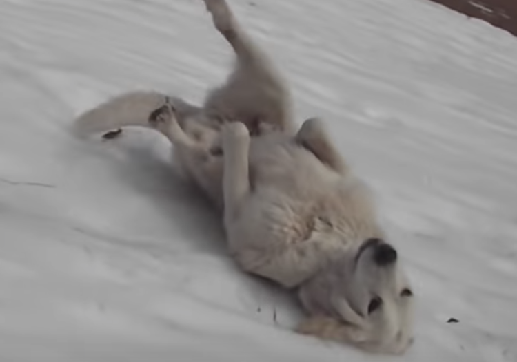 雪でテンションが上がる犬は多いですが、 こちらの犬さんは、ちょっと変わった雪遊びが大好き。 積もっている雪を見て、ゴロン! そのまま自分からコロコロと転がるように寝転んで、 下の方までズザーっと滑って行きました。 うれしそう再び坂を登ってきて... -
