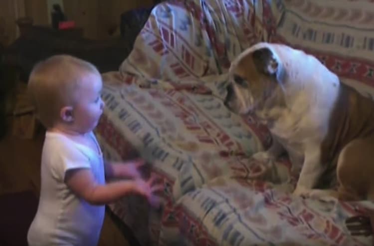 ちょっと、ボクの席を返してください! っと赤ちゃん。身振り手振りで必死に訴えます。 だけどワンコさんは知らんぷり。 も〜うるさいなあ… と言いたげな表情でゴロン。 全然聞いてもらえない赤ちゃんなのでした。 出典:America's Funniest Home Videos