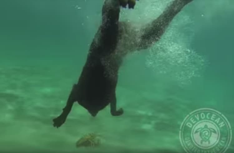 海女さんワンコ?!素潜りでロブスターを取る様子がこちら。