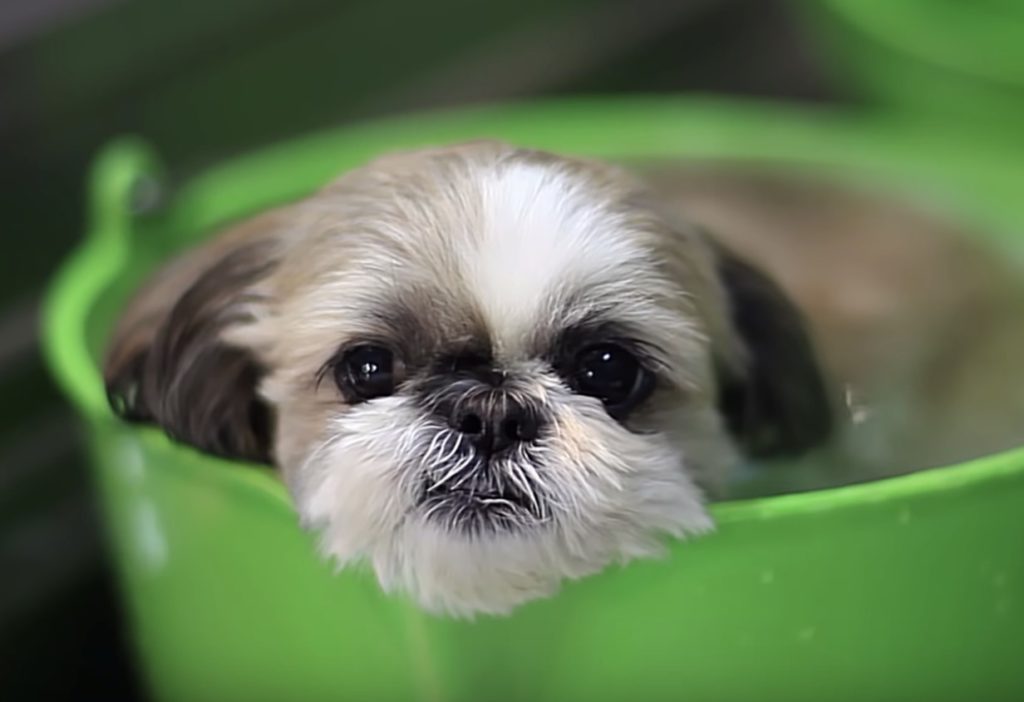 「お風呂の時間ですね、ハイ」おとなしく入浴するシーズーさんが可愛い。