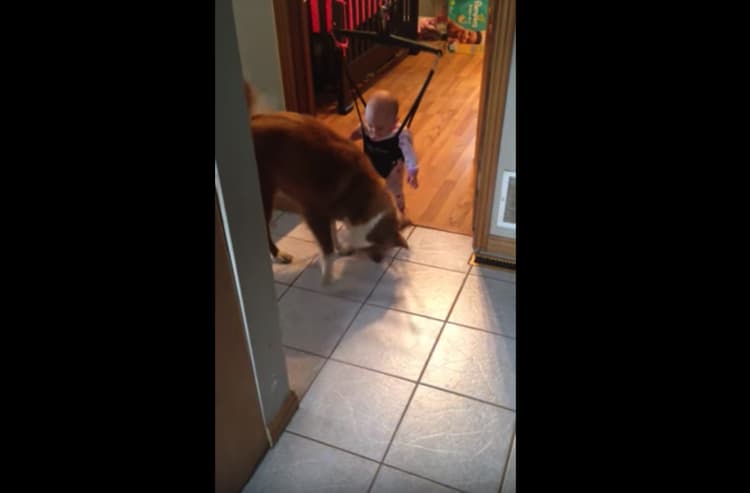 ジャンプの練習をする赤ちゃんに 教えてあげるワンコさん。 ピョンピョンピョンと目の前でやって見せ、 学んだ赤ちゃんは少し上達! 優しいワンコさんなのでした。 出典:Sabrina Sauve