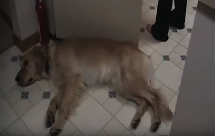 脱力しすぎじゃない?!てこでも動かない犬。