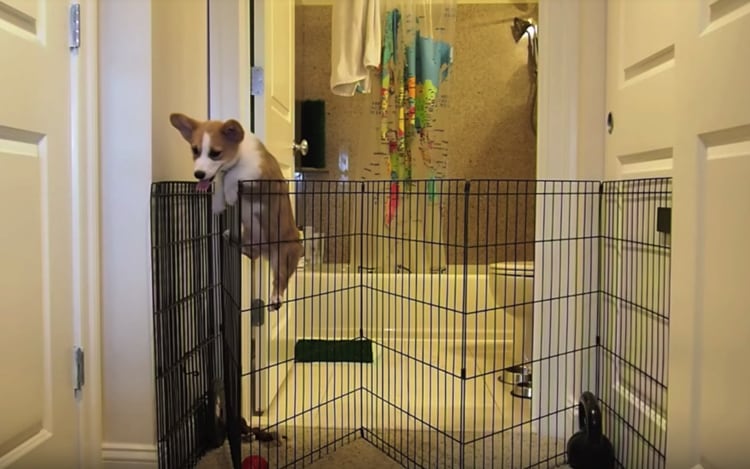 まさかの大脱走!留守番中の子犬を撮影してみたら…