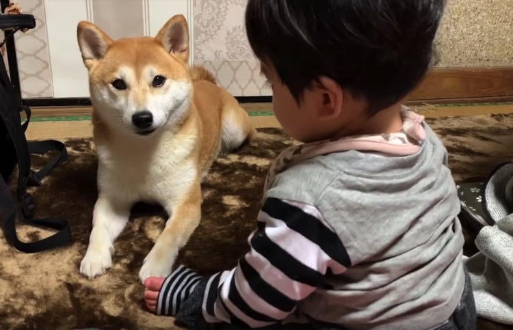 母性本能がくすぐられる!赤ちゃんから目が離せない柴犬。