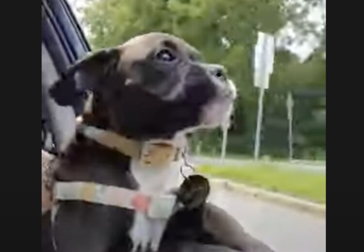 風が気持ちい〜!ドライブに大興奮のワンコ。