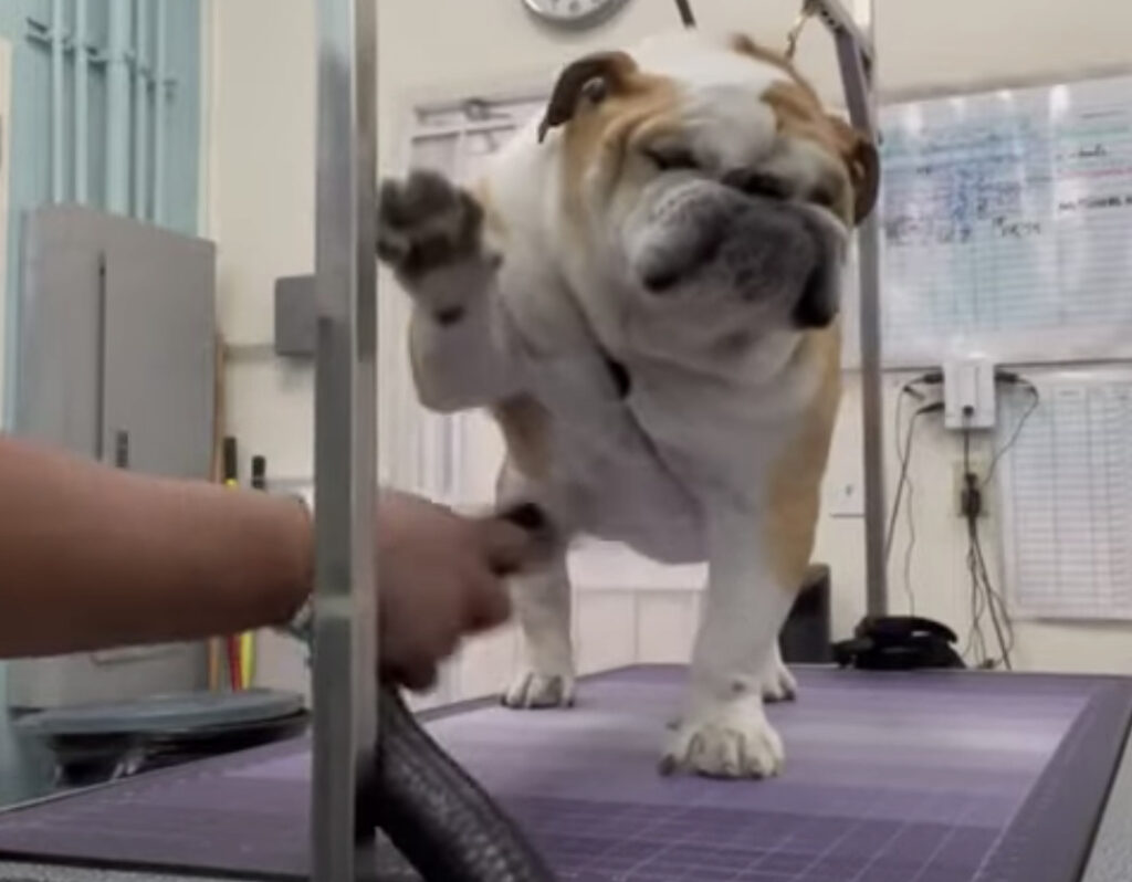 もうやめろって〜!ドライヤーを拒否する犬さん。