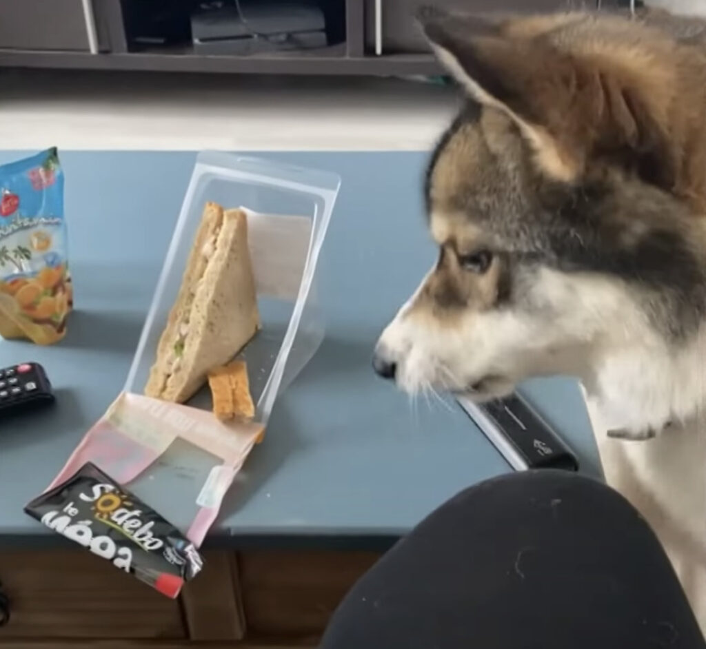サンドイッチは僕が守るワン!しっかり監視してくれる犬さん。