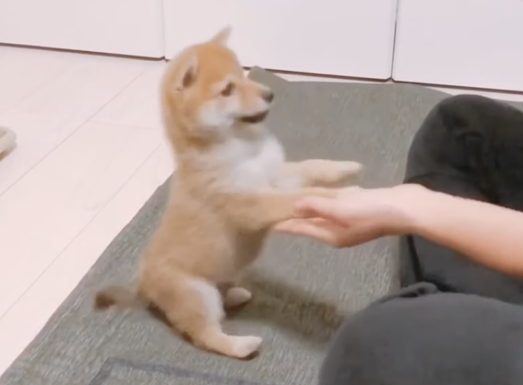 どうしても両足が出ちゃう!お手を練習する柴犬子犬が可愛い♪