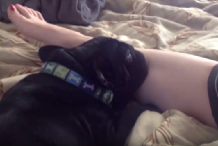 脚フェチ?どうしても飼い主さんの足枕がいいワンコ。