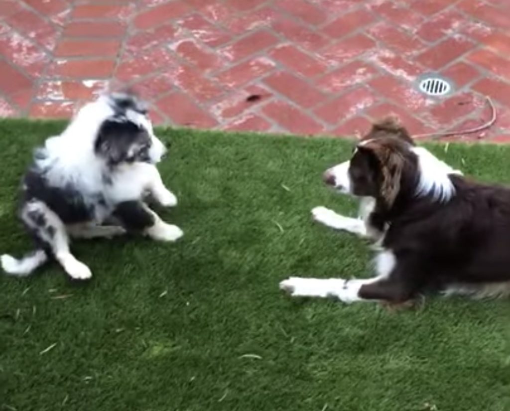 子犬「は…はじめまして!」他の犬との初対面に緊張しすぎて…コロン!