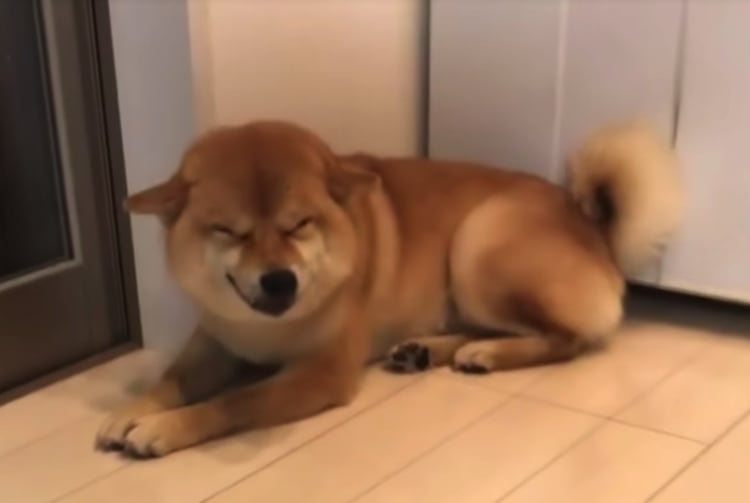 端っこのほうでくつろいでいるワンコさん 退屈しているのかな?と思ったら… ニヤリッ! とってもいい笑顔を見せてくれます。 じわじわとくる、何度も見たくなってしまうこの顔… 思わずこちらも笑ってしまいます。