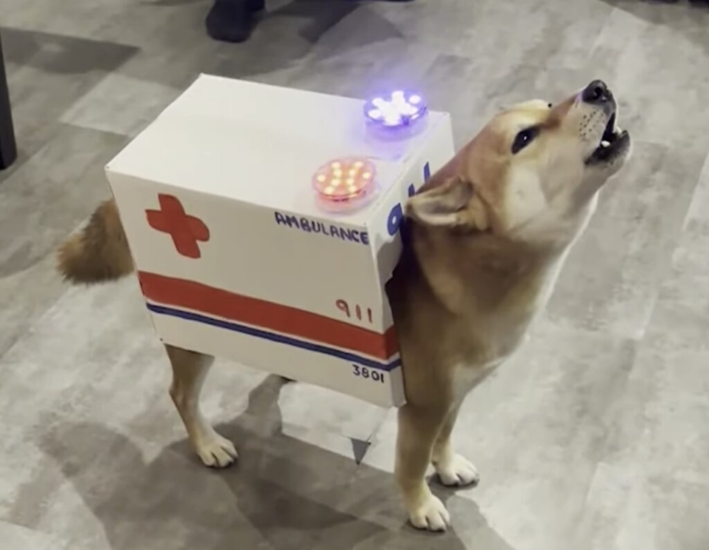 この仮装考えた人天才か? 救急車になりきる犬さん。