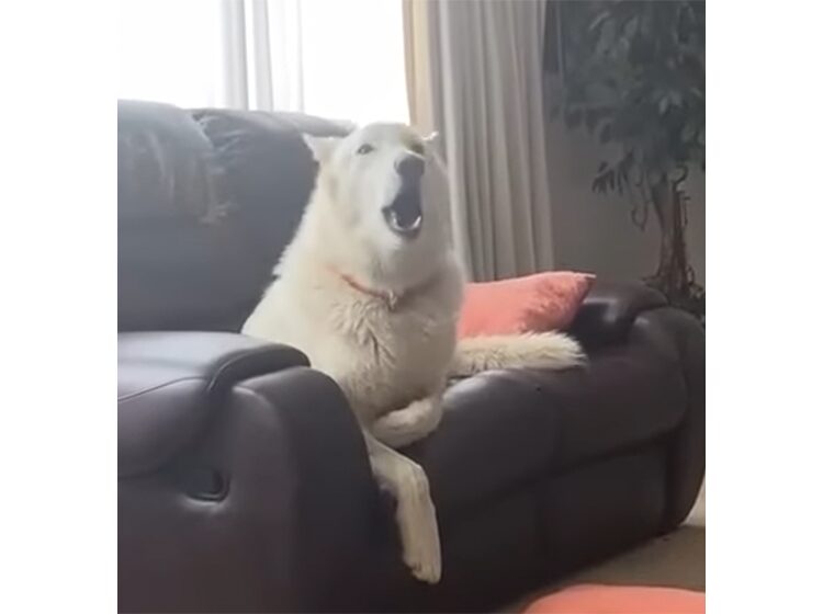 遠吠えがしたくてうずうずしている犬さん。「ダメ」といわれると、なおさらやりたくなる!
