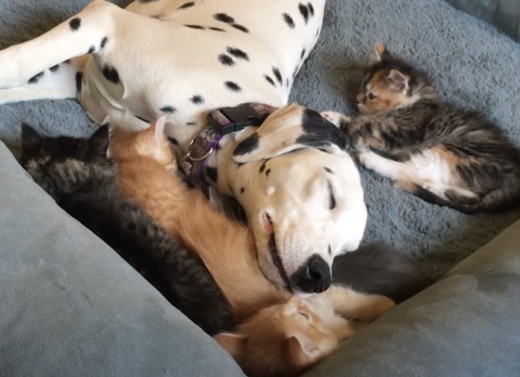 5匹の子猫を保護して 育てることにした飼い主さん。 自宅にはすでに2匹のダルメシアンがいて、 愛犬たちが受け入れてくれるか 少し心配していましたが、 子猫をみた瞬間、犬さんは大喜び! 興味津々でずっと子猫のそばにいて見守ったり 毛づくろいをしてあ... -