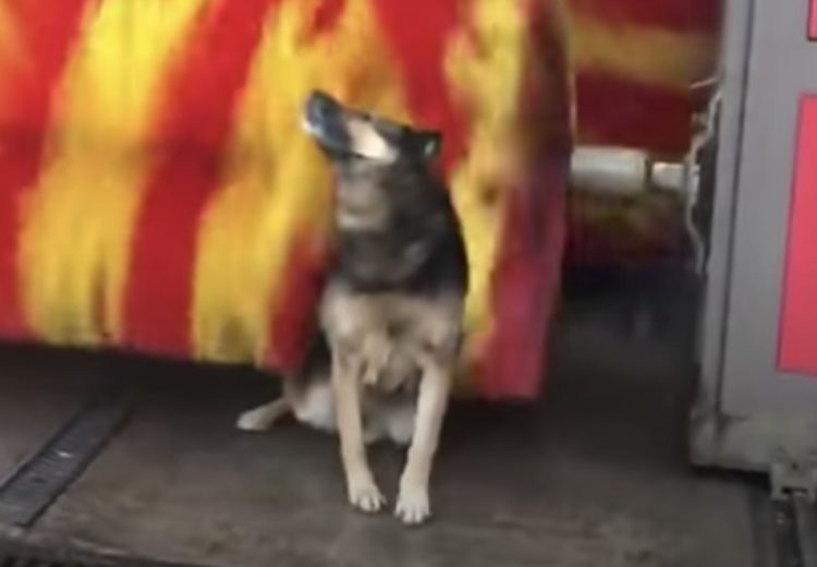 ガソリンスタンドに通うワンコ、目的は…洗車機!