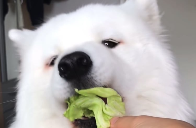 音も、表情も可愛い!犬の野菜モグモグASMR。