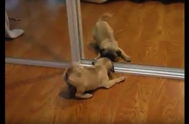 まるでアニメ?初めて鏡を見た子犬の反応が…!