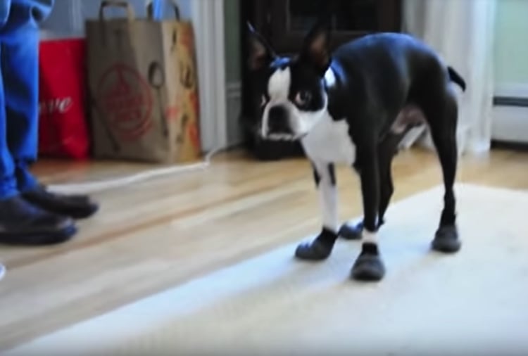 何その動き?!飼い犬に靴下を履かせてみたら…