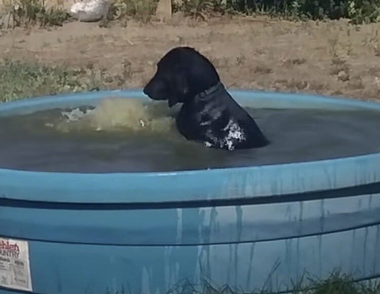 お庭においてもらったプールで 水浴びをしているのは お水が大好きな黒ラブラドールさん。 ひとりで水を前足でかいてバシャバシャ♪ なぜか前足だけ頑張って動かしています。 もしかしてこっそり犬かきの練習してる? こうやって海に行った時のために ひと...