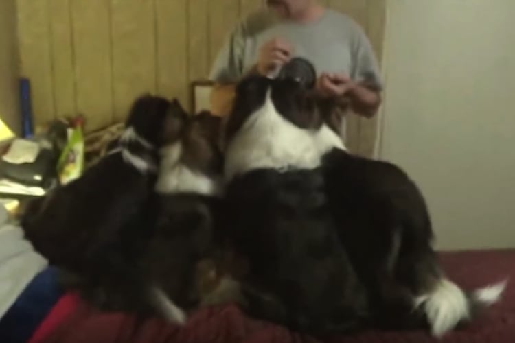 ワンコさんたちお待ちかねのおやつタイム! 飼い主さんが端っこからあげていって、戻って… ってあれ? なんだか数が合わないような? ひとりだけ高速で移動するワンコさん 食い意地はりすぎ、かわいすぎです!