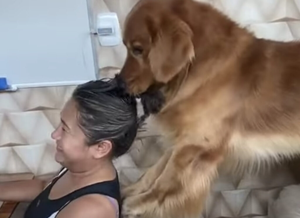 飼い主さんのお食事が終わるのを 近くで待っているゴールデンレトリバーさん。 食べ終わるまで静かに、 おとなしく待つ…つもりだったけれど やっぱりすぐに飽きちゃった!! 「まだ終わらないんですか〜?」 と飼い主さんにいたずら開始!! 髪をまとめて...