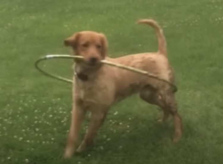 犬「この輪っかなんだ?」 フラフープを持ってグルグル♪